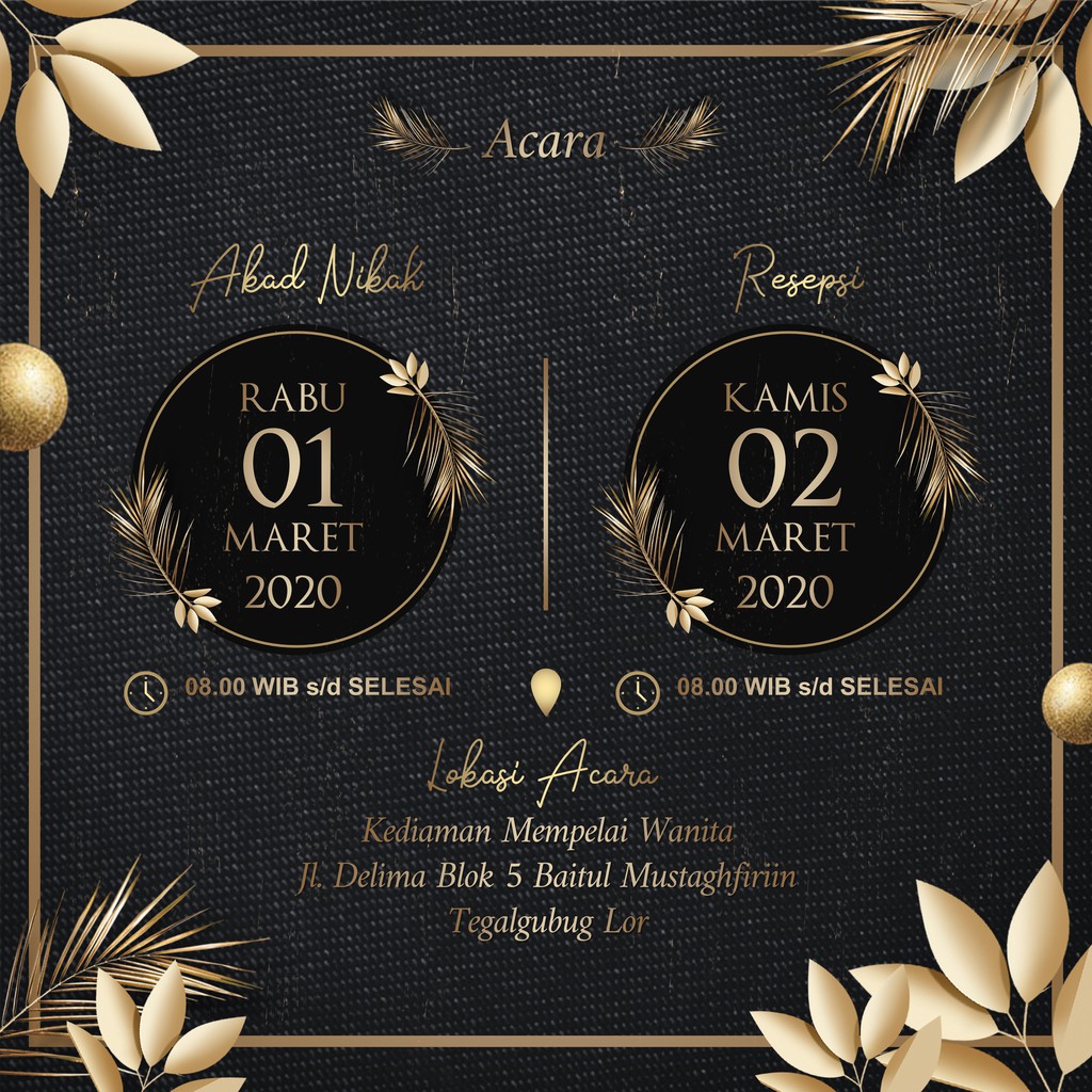 Beli undangan digital pernikahan moderen tema gold black murah terbaru terbaru di shopee. Bagaimana cara pengaplikasiaanya, yuk simak ulasan selengkapnya! Setelah akad nikah yang bernuansa warna putih. Black & gold theme royal wedding invitation video inspiration inspirasi video undangan nikah digital tema = black & gold royal wedding music . Bahan kertas art paper 260 gsm.